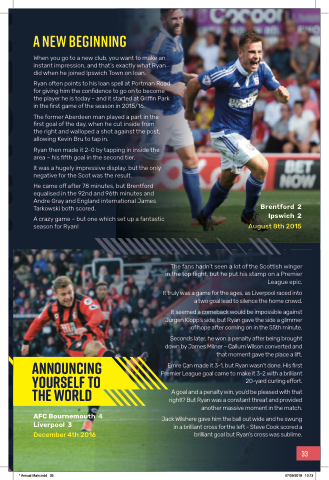 Ryan often points to his loan spell at Portman Road for giving him the con dence to go on to become the player he is today – and it started at Gri n Park in the rst game of the season in / .