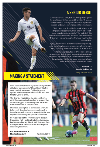 After a season hampered by injury, Lewis probably didn’t play as much as he’d have liked in his rst season with the Cherries. But in a big game against Middlesbrough at Vitality Stadium, it was time for Lewis to shine.
