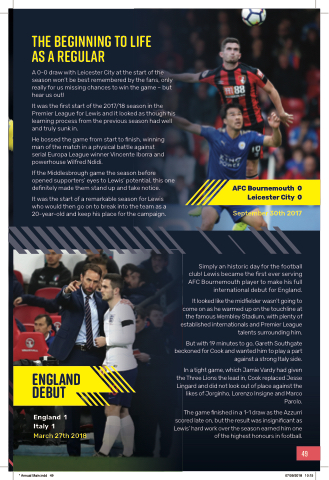 Simply an historic day for the football club! Lewis became the rst ever serving AFC Bournemouth player to make his full