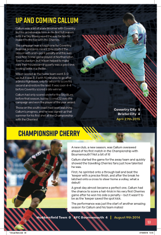 Callum was a bit of a late bloomer with Coventry but his unbelievable form in his rst full season with the Sky Blues paved the way for him to make it to the top with the Cherries.
