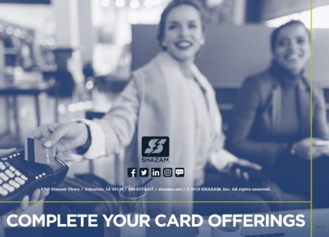 6700 Pioneer Pkwy / Johnston, IA 50131 / 800-537-5427 / shazam.net / © 2019 SHAZAM, Inc. All rights reserved. COMPLETE YOUR CARD OFFERINGS 03/19