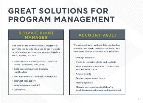 you or your cardholder needs help, we’ll be ready.                     ACCOUNT VAULT