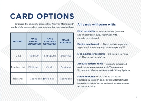 You have the choice to issue either Visa  or Mastercard ®   All cards will come with:
