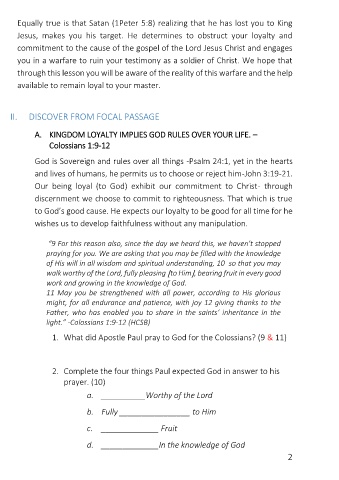 Page 2 - Book Fold -Lesson 11 -Kingdom loyalty and Spiritual Warfare
