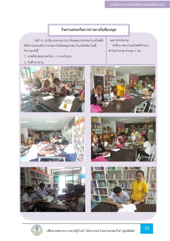 งานนโยบายการด าเนินกิจกรรมส่งเสริมการอ่าน