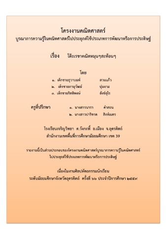 รายงานนี้เปนสวนประกอบของโครงงานคณิตศาสตรบูรณาการความรูในคณิตศาสตร
