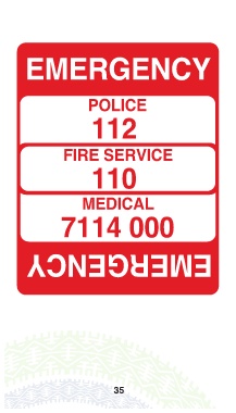 EMERGENCY POLICE 112 FIRE SERVICE 110 MEDICAL 7114 000 EMERGENCY 35