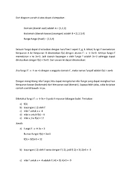 memetakan x ke 3x+3. Jadi daerah bayangan x oleh fungsi f adalah 3x+3 sehingga dapat