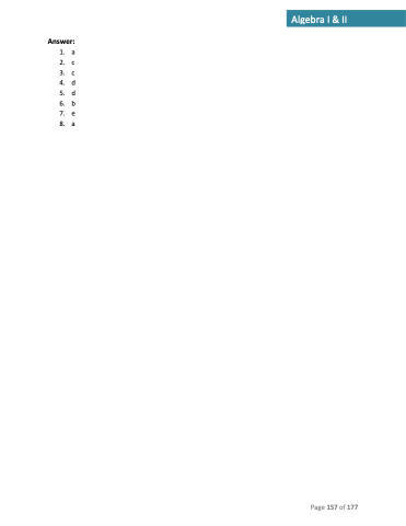 Answer: 1. a 2. c 3. c 4. d 5. d 6. b 7. e 8. a Page 157 of 177 Algebra I & II