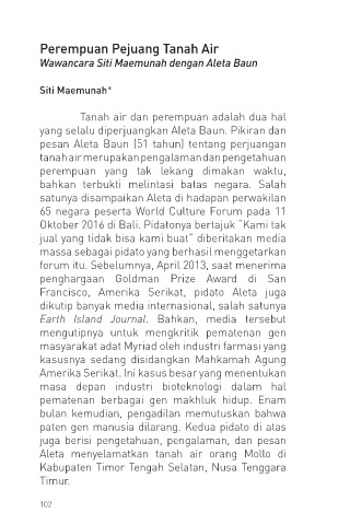 yang selalu diperjuangkan Aleta Baun. Pikiran dan