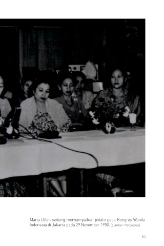 Maria Ulfah sedang menyampaikan pidato pada Kongres Wanita Indonesia di Jakarta pada 29 November 1950. (Sumber: Perpusnas) 65