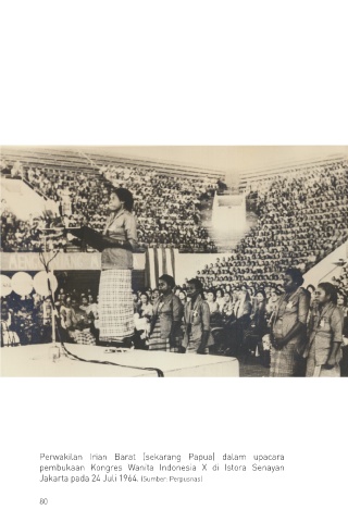 Perwakilan Irian Barat (sekarang Papua) dalam upacara pembukaan Kongres Wanita Indonesia X di Istora Senayan Jakarta pada 24 Juli 1964. (Sumber: Perpusnas) 80