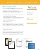 HMH Reading Inventory® is a research-based, adaptive assessment that measures reading skills and longitudinal progress from Kindergarten through college readiness. It can be administered in a group setting in around 30 minutes, three to ve times per year.