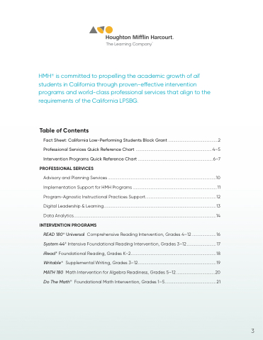 HMH® is committed to propelling the academic growth of all students in California through proven-e ective intervention programs and world-class professional services that align to the requirements of the California LPSBG.