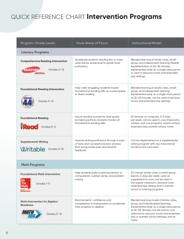 QUICK REFERENCE CHART Intervention Programs