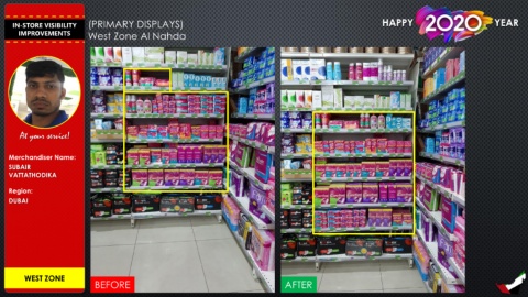 IN-STORE VISIBILITY (PRIMARY DISPLAYS) HAPPY YEAR IMPROVEMENTS West Zone Al Nahda At your service! Merchandiser Name: SUBAIR VATTATHODIKA Region: DUBAI WEST ZONE BEFORE AFTER