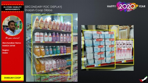 IN-STORE VISIBILITY (SECONDARY FOC DISPLAY) HAPPY YEAR IMPROVEMENTS Sharjah Coop Dibba At your service! Merchandiser Name: HAMZA ZAFAR Region: DUBAI SHARJAH COOP
