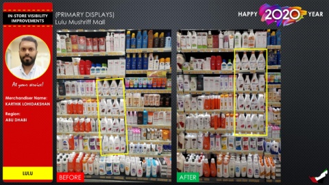 IN-STORE VISIBILITY (PRIMARY DISPLAYS) HAPPY YEAR IMPROVEMENTS Lulu Mushriff Mall At your service! Merchandiser Name: KARTHIK LOHIDAKSHAN Region: ABU DHABI LULU BEFORE AFTER