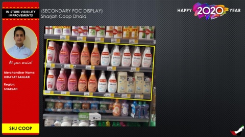 IN-STORE VISIBILITY (SECONDARY FOC DISPLAY) HAPPY YEAR IMPROVEMENTS Sharjah Coop Dhaid At your service! Merchandiser Name: HIDAYAT SANJARI Region: SHARJAH SHJ COOP