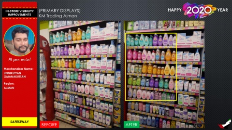 IN-STORE VISIBILITY (PRIMARY DISPLAYS) HAPPY YEAR IMPROVEMENTS KM Trading Ajman At your service! Merchandiser Name: UNNIKUTTAN OMANAKUTTAN Region: AJMAN SAFESTWAY BEFORE AFTER