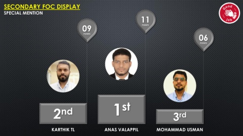 SECONDARY FOC DISPLAY SPECIAL MENTION 11 09 POINTS 06 POINTS POINTS st 2 1 3 nd rd KARTHIK TL ANAS VALAPPIL MOHAMMAD USMAN