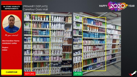 IN-STORE VISIBILITY (PRIMARY DISPLAYS) HAPPY YEAR IMPROVEMENTS Carrefour Oasis Mall At your service! Merchandiser Name: ANGELINO SAFRA Region: DUBAI CARREFOUR BEFORE AFTER