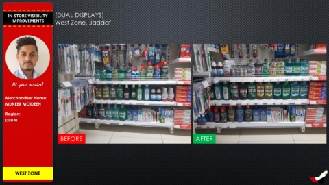 IN-STORE VISIBILITY (DUAL DISPLAYS) IMPROVEMENTS West Zone, Jaddaf At your service! Merchandiser Name: MUNEER MOIDEEN Region: DUBAI BEFORE AFTER WEST ZONE