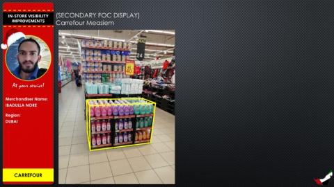 IN-STORE VISIBILITY (SECONDARY FOC DISPLAY) IMPROVEMENTS Carrefour Measiem At your service! Merchandiser Name: IBADULLA NORE Region: DUBAI CARREFOUR