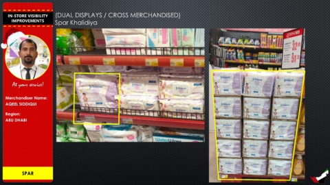 IN-STORE VISIBILITY (DUAL DISPLAYS / CROSS MERCHANDISED) IMPROVEMENTS Spar Khalidiya At your service! Merchandiser Name: AQEEL SIDDIQUI Region: ABU DHABI SPAR