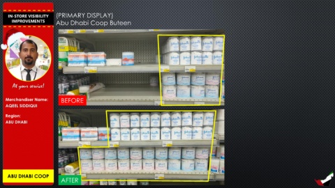 IN-STORE VISIBILITY (PRIMARY DISPLAY) IMPROVEMENTS Abu Dhabi Coop Buteen At your service! Merchandiser Name: BEFORE AQEEL SIDDIQUI Region: ABU DHABI ABU DHABI COOP AFTER