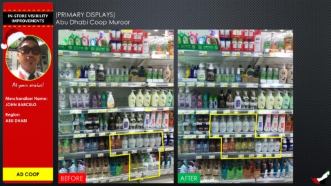 IN-STORE VISIBILITY (PRIMARY DISPLAYS) IMPROVEMENTS Abu Dhabi Coop Muroor At your service! Merchandiser Name: JOHN BARCELO Region: ABU DHABI AD COOP BEFORE AFTER