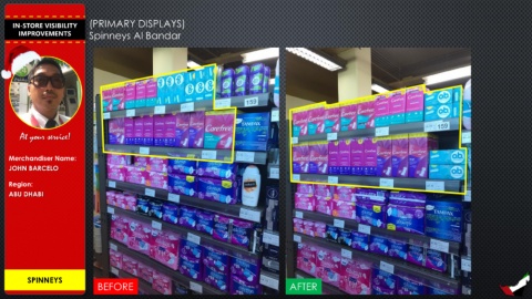 IN-STORE VISIBILITY (PRIMARY DISPLAYS) IMPROVEMENTS Spinneys Al Bandar At your service! Merchandiser Name: JOHN BARCELO Region: ABU DHABI SPINNEYS BEFORE AFTER