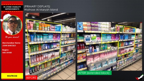 IN-STORE VISIBILITY (PRIMARY DISPLAYS) IMPROVEMENTS Waitrose Al Maryah Island At your service! Merchandiser Name: JOHN BARCELO Region: ABU DHABI AFTER (extended block) WAITROSE BEFORE