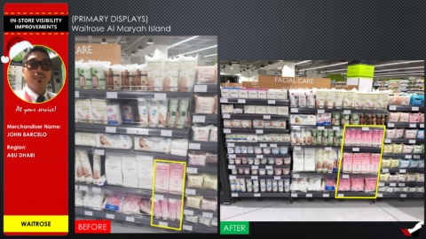 IN-STORE VISIBILITY (PRIMARY DISPLAYS) IMPROVEMENTS Waitrose Al Maryah Island At your service! Merchandiser Name: JOHN BARCELO Region: ABU DHABI WAITROSE BEFORE AFTER
