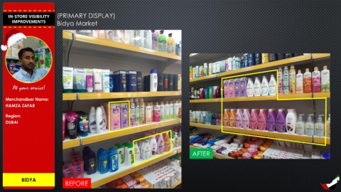 IN-STORE VISIBILITY (PRIMARY DISPLAY) IMPROVEMENTS Bidya Market At your service! Merchandiser Name: HAMZA ZAFAR Region: DUBAI AFTER BIDYA BEFORE