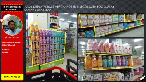 IN-STORE VISIBILITY (DUAL DISPLAY/CROSS MERCHANDISED & SECONDARY FOC DISPLAY) IMPROVEMENTS Sharjah Coop Dibba At your service! Merchandiser Name: HAMZA ZAFAR Region: DUBAI SHARJAH COOP
