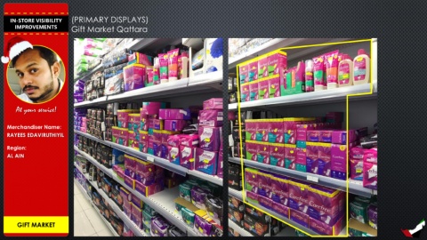 IN-STORE VISIBILITY (PRIMARY DISPLAYS) IMPROVEMENTS Gift Market Qattara At your service! Merchandiser Name: RAYEES EDAVIRUTHIYIL Region: AL AIN GIFT MARKET
