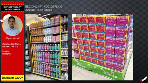 IN-STORE VISIBILITY (SECONDARY FOC DISPLAYS) IMPROVEMENTS Sharjah Coop Dhaid At your service! Merchandiser Name: HIDAYAT SANJARI Region: SHARJAH SHARJAH COOP