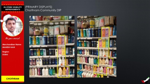 IN-STORE VISIBILITY (PRIMARY DISPLAYS) IMPROVEMENTS Choithram Community DIP At your service! Merchandiser Name: MAHESH NAIK Region: DUBAI CHOITHRAM