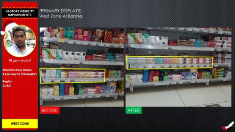 IN-STORE VISIBILITY (PRIMARY DISPLAYS) IMPROVEMENTS West Zone Al Barsha At your service! Merchandiser Name: KAWSHALYA FERNANDO Region: DUBAI BEFORE AFTER BEFORE AFTER WEST ZONE