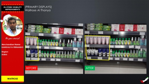 IN-STORE VISIBILITY (PRIMARY DISPLAYS) IMPROVEMENTS Waitrose Al Thanya At your service! Merchandiser Name: KAWSHALYA FERNANDO Region: DUBAI BEFORE AFTER WAITROSE