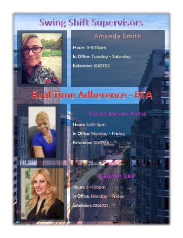 Hours: 3-11:30pm In Office: Tuesday - Saturday Extension: 1065705 Hours: 6:30-3pm In Office: Monday - Friday Extension: 1065786 Hours: 3-11:30pm In Office: Monday - Friday Extension: 1065721