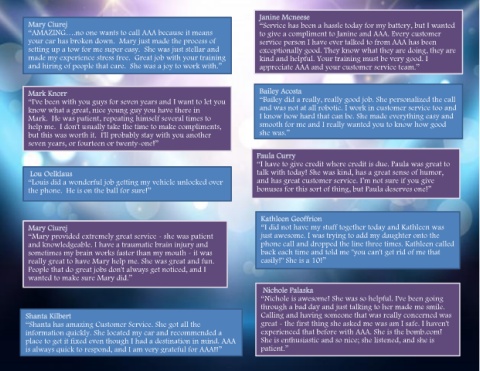 and hiring of people that care. She was a joy to work with.” appreciate AAA and your customer service team.”