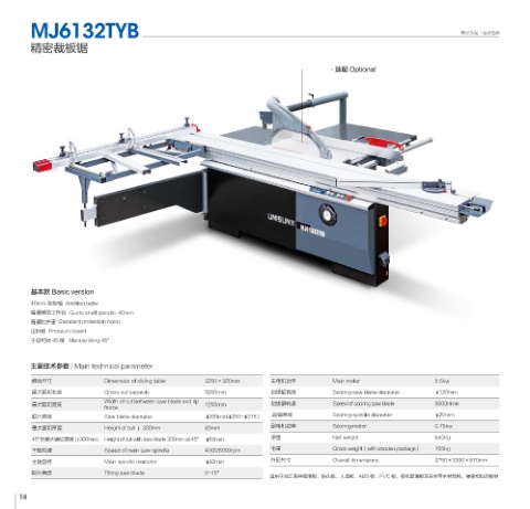 主轴转速 Speed of main saw spindle 4000/6000rpm 毛重 Gross weight(with wooden package) 765kg