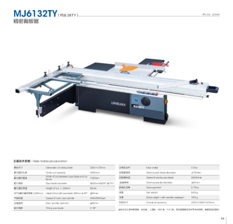 主轴转速 Speed of main saw spindle 4000/6000rpm 毛重 Gross weight(with wooden package) 765kg
