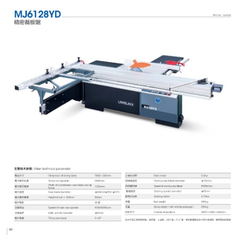 最大锯切长度 Gross cut capacity 2800mm 划线锯直径 Scoring saw blade diameter φ120mm