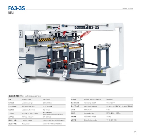 加工工件宽度 Machining part width 150-1800mm 最大钻孔直径 Max.boring diameter φmax=35mm(单钻头)D=15mm(多钻头)