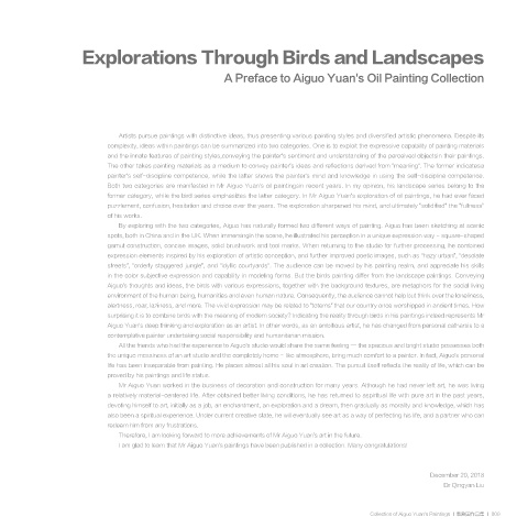 former category, while the bird series emphasizes the latter category. In Mr Aiguo Yuan's exploration of oil paintings, he had ever faced