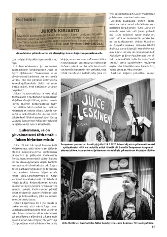 Aamulehden pikkuilmoitus oli alkusykäys Juicen kirjaston perustamiselle nen suhde minulla oli esimerkiksi Kalle