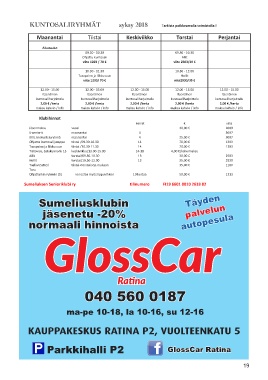 KUNTOSALIRYHMÄT syksy 2018 Tarkista poikkeamalla toimistolla !